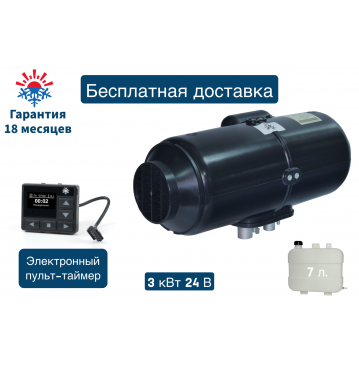 Отопитель воздушный дизельный Планар 4ДМ2-24В-S (3 киловатта) Монтажный комплект с топливным баком 7.5л / Электронный пульт